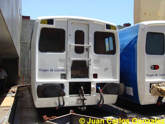 DOCK SUD 21 Nov(MDV).-Tal como era anunciado, a las 9:00 hs. arribo al Puerto de Dock Sud el barco "BBC Mississippi" procedente del Puerto de Santander (España), con nueve locomotora General Motors serie 319, dos formaciones Talgo IV de 9 coches cada uno, y contenedores que contienen repuestos y accesorios para las locomotoras y los coches. Siendo las 11:40 hs. llegamos al pie del barco, donde comenzaron las tareas previas para efectuar las maniobras de izaje y la puesta sobre la vía de la primer formación Talgo. Para ello fuimos invitados por el personal del barco y la Secretaria de Transporte a ver el contenido en las bodegas. Luego de caminar por el barco dimos con los dos niveles donde se encontraba el material remolcado primero y el rodante después, en esta nota vemos primero sobre la cubierta a la formaciones "Virgen de Lourdes" y Virgen de Lujan", cada una desacoplada de la otra, y a las nueve locomotoras ubicadas en la misma bodega. Luego del almuerzo, a las 14:00 hs. comenzo el desembarco de la formación. En el lugar se encontraban a primera hora, el Subsecretario de Transporte Ferroviario el Sr. Antonio Luna, junto con el Sr. Daniel Carosella; personal de la empresa Talgo para analizar las maniobras de acople y puesta en servicio correspondiente; personal de mecánica de SOFSE el Sr. Luis Bustamante; personal de la Terminal Portuaria de Longiter, personal de Ferrosur Roca y RENFE. También como es de suponer en cada acontecimiento de estos se encontraban un montón de ferroaficionados presentes de distintos medios y webs. Sobre el final de la tarde y siendo las 19:00 hs. se encontraban en tierra seis coches de nueve de la primer formación, encontrándose acoplados tres de ellos. El operativo continuara mañana a partir de las 7:00 hs., donde se bajaran el resto de los coches y las locomotoras según nuestros cálculos.