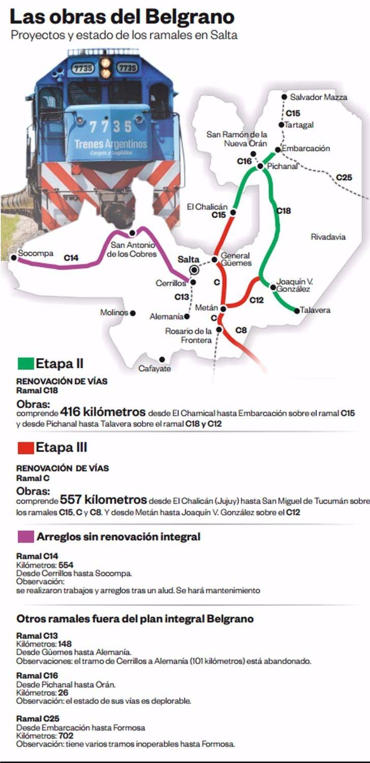 Los centros desde donde se derivarán las tareas de renovación de las vías estarán ubicados en Joaquín V. González (Anta), La Estrella (Orán) y en Yuto (Ledesma, Jujuy).