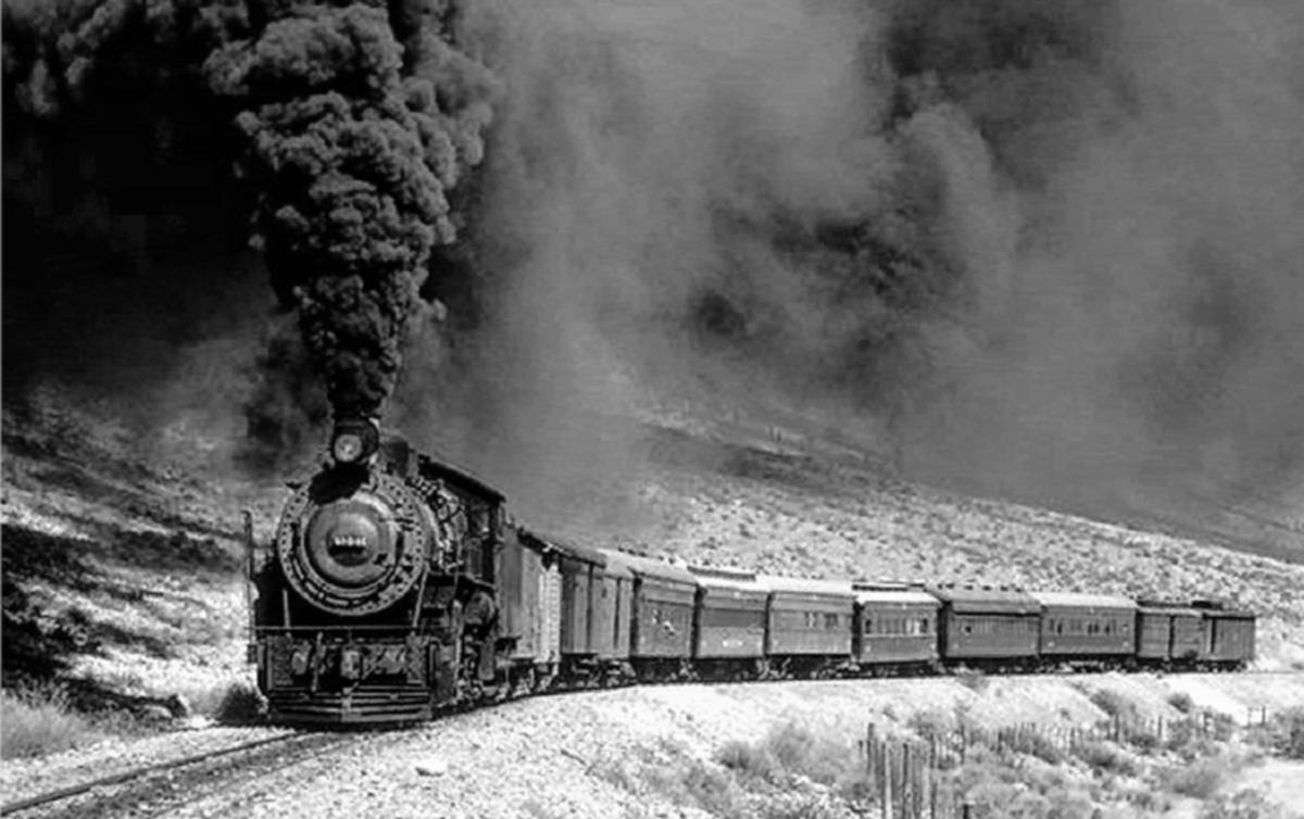 La locomotora a vapor, venciendo con gran esfuerzo la cordillera de los Andes.