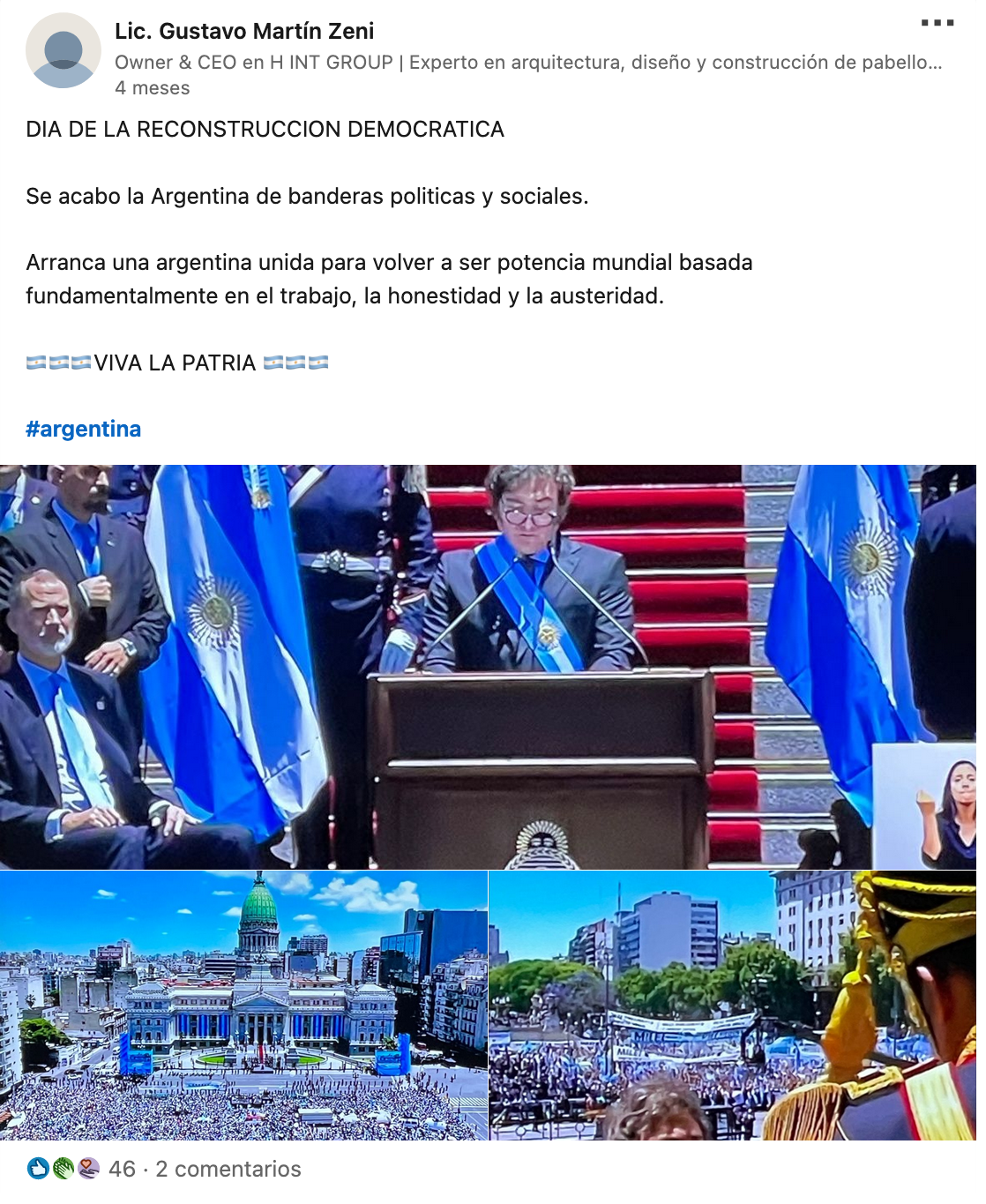 La publicación del asesor oficioso del Gobierno celebrando la asunción de Javier Milei.