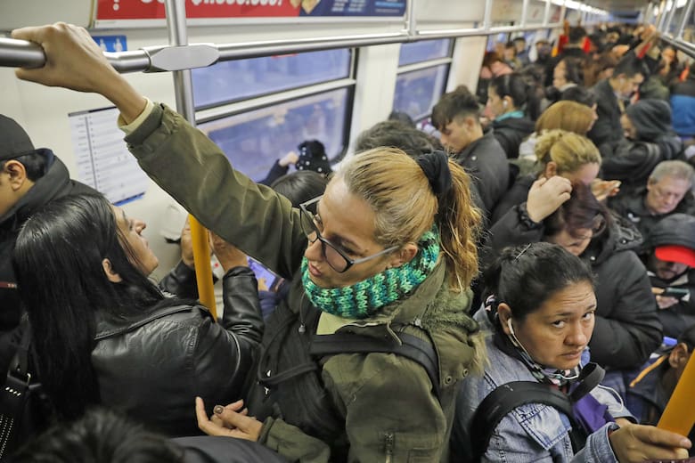 Varios minutos después, cuando ven llegar a un tren a una velocidad mínima, la duda pasa a ser otra: si subirse o no. Los vagones están colmados. La puerta se abre y los usuarios se acercan para subir, pero muchos no lo logran. Son demasiados. La puertas se cierran, pero no del todo: se traban con los hombros y los pies de quienes no están dispuestos a esperar el próximo tren hasta que algunos acceden a bajar.