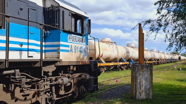 La formación está compuesta por 14 vagones repletos de mercadería, además de la locomotora conducida por Germán Lencina, quien manifestó mucha emoción por el trabajo que estaban realizando.