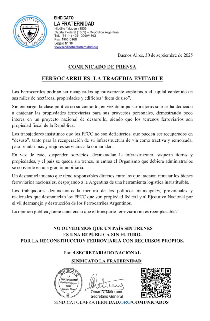 De acuerdo con lo que precisó la empresa, se produjo un descalce en las vías y un socavón en la traza, lo que generó riesgos para la circulación. Por eso se decidió interrumpir los servicios hacia Córdoba y Tucumán, que habitualmente parten desde la estación Retiro.