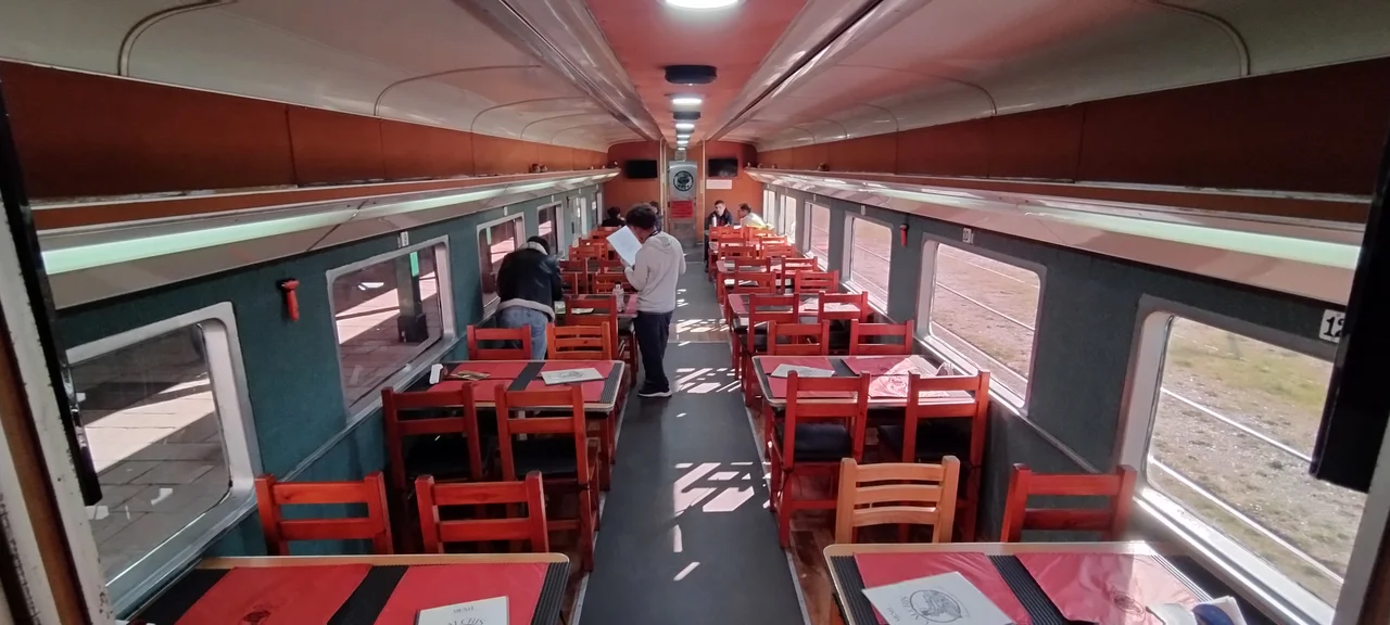 En este viaje, esa escena se puede hacer realidad porque la formación cuenta con un vagón restaurante. El mismo se habilita por franjas horarias —desayuno, almuerzo, merienda y cena— con platos principales muy abundantes, y típicos de la gastronomía local, que oscilan entre los $25.000 y los $40.000 (según opción).
