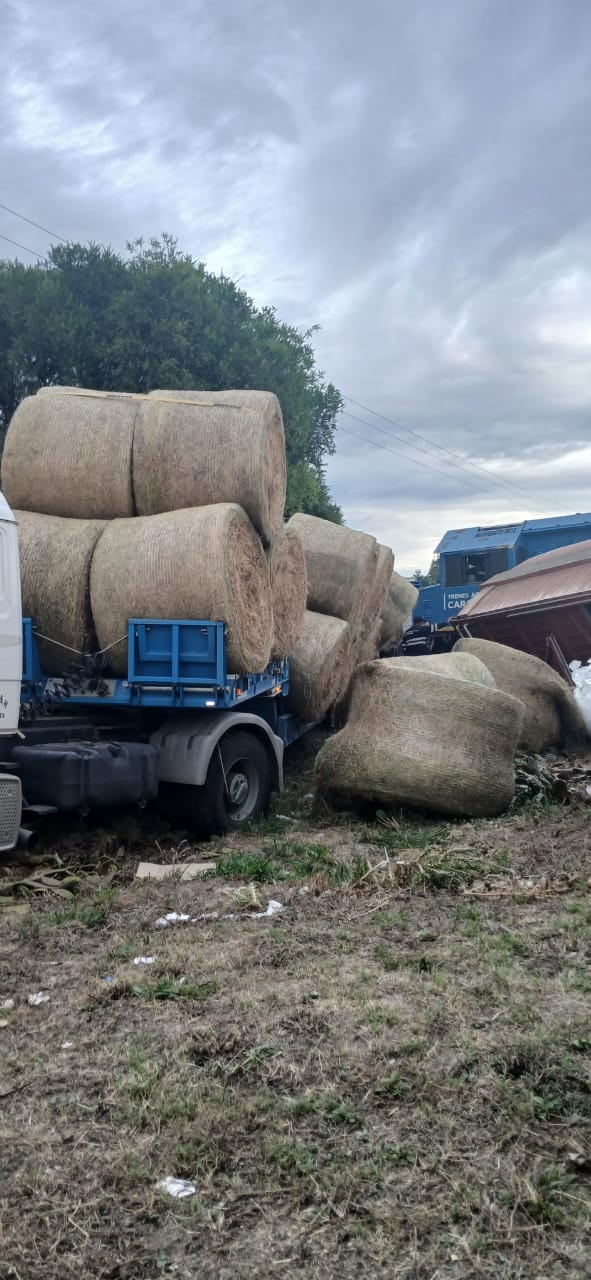 El siniestro vial ocurrió a las 6.50 en la intersección de la ruta provincial 10 y la vieja ruta 19, a la altura del departamento de Río Primero. Según las primeras informaciones, el conductor de un Mercedes Benz 1634 cargado con rollos de alfalfa no vio que la formación venía en camino.El conductor de 34 años resultó ileso.