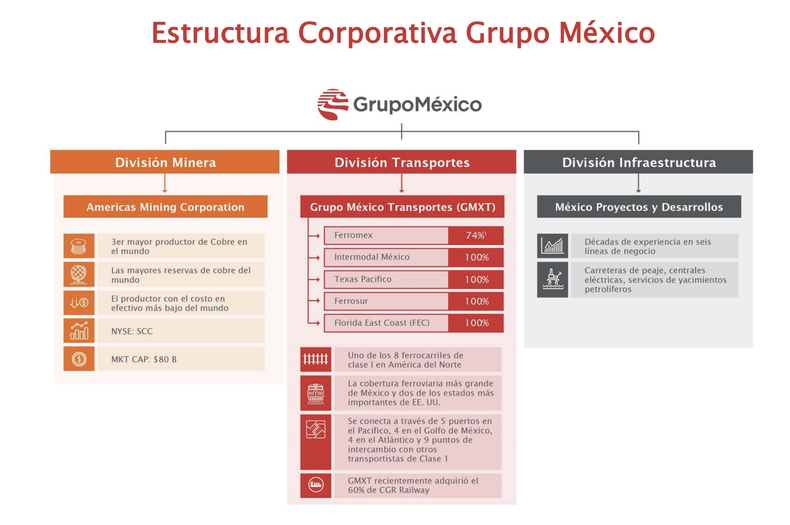 Primero, por el poderío de GMEX. El imperio de la familia Larrea es uno de los mayores productores de cobre del mundo, con operaciones en México, Perú y Estados Unidos. Desde allí, se expandió hacia una red de trenes de carga que actualmente incluye operaciones a través de más de 11.000 kilómetros de vías en ese país y líneas en Texas y en Florida.