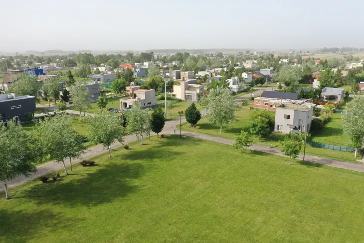 Estancias de domselaar chicoVista aérea del Barrio Cerrado Estancias de Domselaar, donde conviven el casco urbano histórico y otros desarrollos residenciales como Domselaar Chico, Los tilos y Las Margaritas, integrados a un entorno de fuerte identidad territorial.