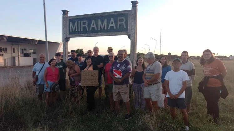 Vecinos reunidos en la estación de trenes de Miramar insisten con el pedido para reactivar el servicio.El anhelo, pese al paso del tiempo, no cesa. El pedido por la vuelta del servicio de trenes entre las ciudades de Mar del Plata y Miramar sumó otro capítulo en los últimos días a partir de una nueva concentración de vecinos y referentes del partido de General Alvarado que se juntaron para visilizar su reclamo. El apoyo de las máximas autoridades de esa comuna al proyecto para restablecer el ramal no ha encontrado eco en el gobierno del entonces intendente Guillermo Montenegro y, en consecuencia, los avances han sido nulos.