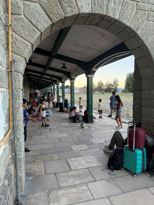 Esa misma tarde regresé para presenciar la salida del servicio turístico a Perito Moreno, una experiencia que cada fin de semana suma más pasajeros. El viaje dura unos 50 minutos y termina con una recepción en la casa de té de la estación y una cena patagónica en la parrilla Los Juncos. El tren parte al atardecer y la luz sobre el lago convierte el trayecto en un espectáculo.Al día siguiente me tocaba regresar. Llegué a la estación cerca de las 15 para tomar el tren 364 rumbo a Viedma, pero un desperfecto en la locomotora obligó a esperar una unidad de reemplazo que venía desde Jacobacci. La demora terminó transformándose en una escena muy argentina: rondas de mate, facturas y charlas improvisadas en el andén con otros pasajeros que viajaban por turismo, trabajo o simplemente para volver a casa.