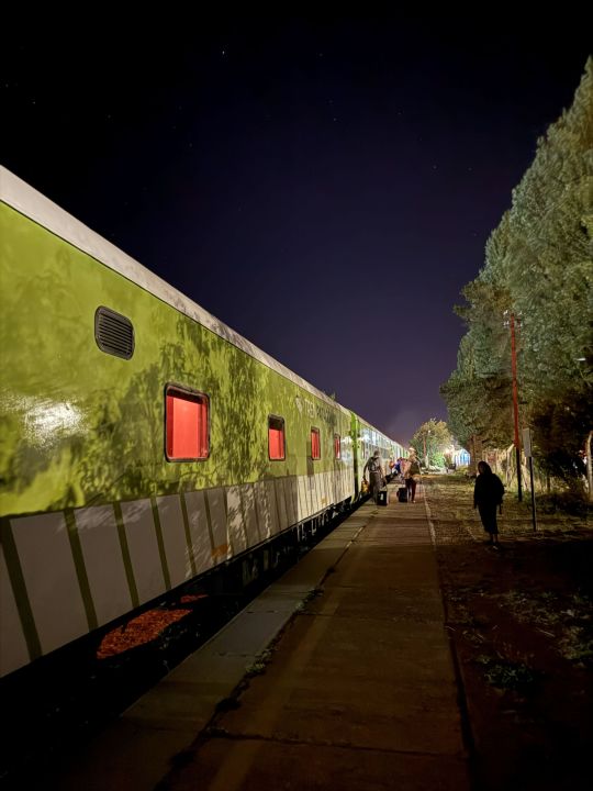 Cerca de las once de la noche el tren ingresó a la estación. Mientras se realizaban las maniobras yo me acomodaba en mi camarote. Recuerdo esa sensación de meta cumplida al subir. Pasada la medianoche partimos hacia la cordillera, internándonos en la inmensidad de la estepa patagónica. Armé mi cama y me conecté al internet satelital disponible en camarotes y en el coche restaurante, ya que durante gran parte del viaje la señal telefónica es nula.