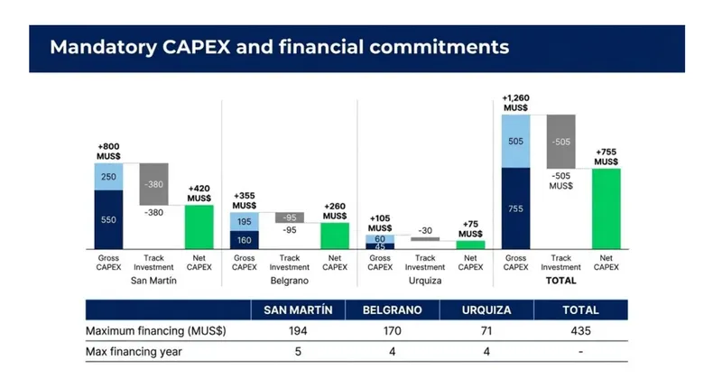 En declaraciones públicas, el ejecutivo Bernardo Ayala, CEO de la filial estadounidense del grupo, afirmó: “Estamos proyectando una inversión de hasta USD 3.000 millones para poder levantar la infraestructura. Eso sería la inversión principal, sería para rehabilitar la vía, poder mover más carga en cuanto a tonelaje y número de carros y modernizar el equipo. Pero son inversiones graduales”. Asimismo explicó que el objetivo es desarrollar una red orientada al transporte de granos, productos industriales, minerales y cargas generales, con foco en el Belgrano Cargas, por su cobertura y acceso a zonas agrícolas, mineras y puertos.